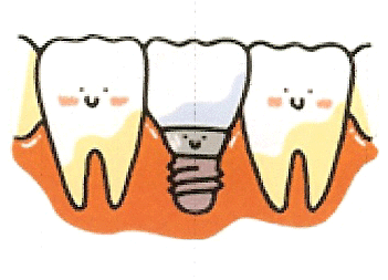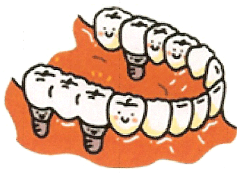 針金付きの入れ歯ではなく、歯の無い部分に適切な数のインプラントを入れ、固定式の人口歯を取り付けます。 歯の無い部分が広い場合も同様に、“固定式”の人口歯を入れることができます。