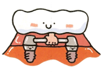 数本のインプラントを入れて入れ歯の固定源となる維持装置を取り付けます。 特に、下顎の歯が1本も無い場合の修復にはインプラントがよく利用されます。 歯のない部分が広い場合も同様に、“固定式”の人口歯を入れることができます。